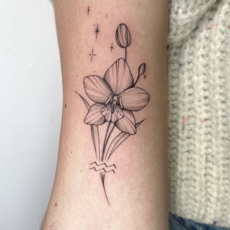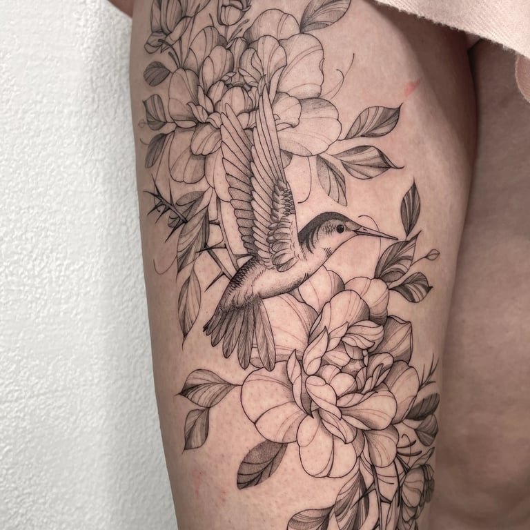 Spécialistes du tatouage Fine Line à Bayonne, nous réalisons des pièces d'une finesse extrême. Ce style est idéal pour ceux qui recherchent l'élégance et la subtilité : lettrages fins, motifs botaniques ou petit tattoo. C'est le choix parfait pour un premier tatouage ou pour habiller la peau comme un bijou délicat et intemporel.